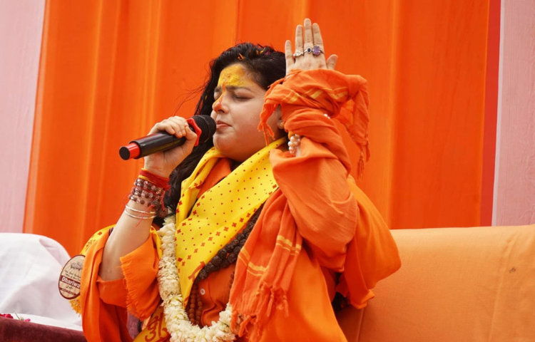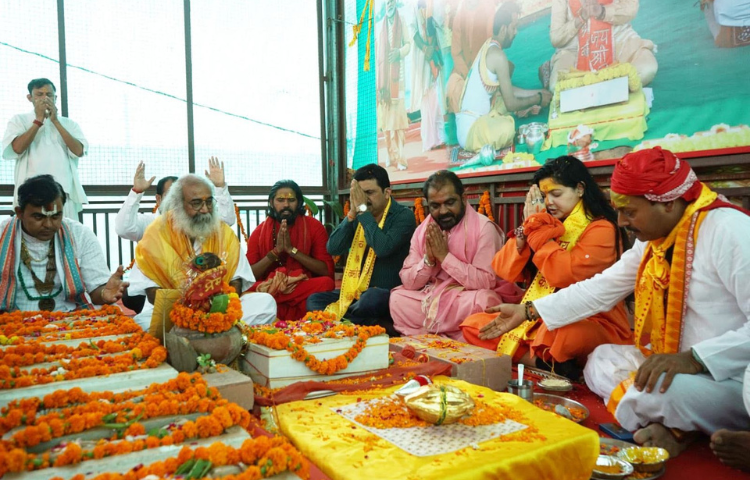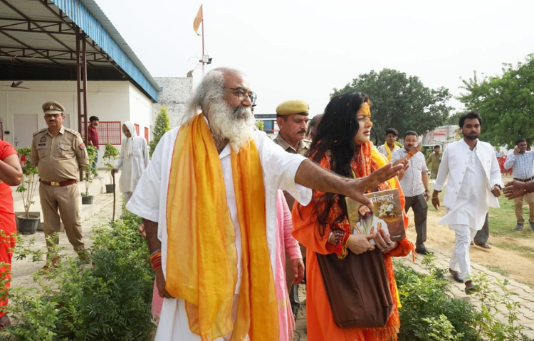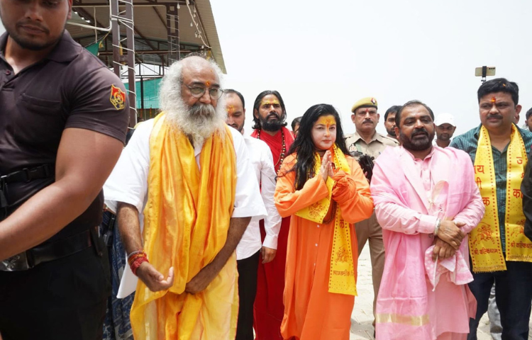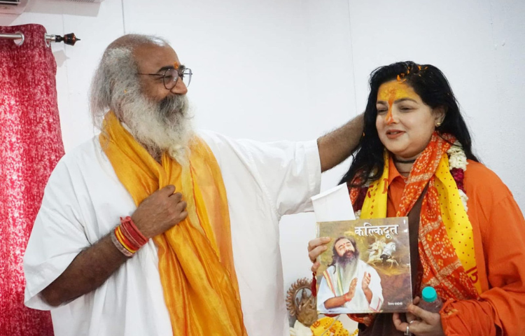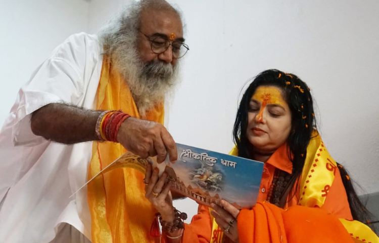 श्री कल्कि धाम पहुंचकर महामण्डलेश्वर साध्वी यमाई ममतानन्द गिरि जी ने किया शिलादान।